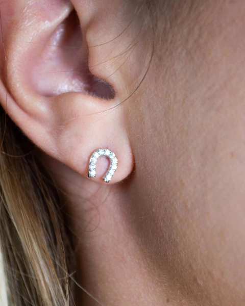 Brinco Ferradura PP Cravejada banhado em Ródio Branco.