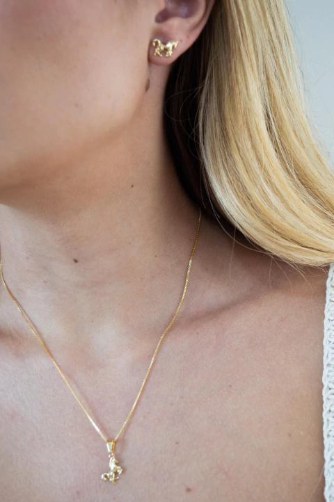 Conjunto Cavalo Galope PP banhado em oURO 18K.