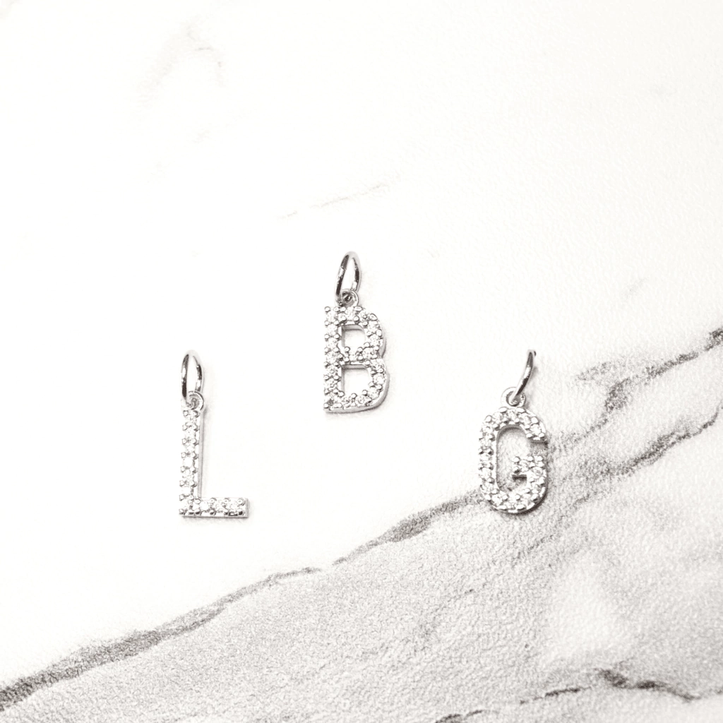 Pingente de Letra Cravejado Banhado em Ródio Branco.